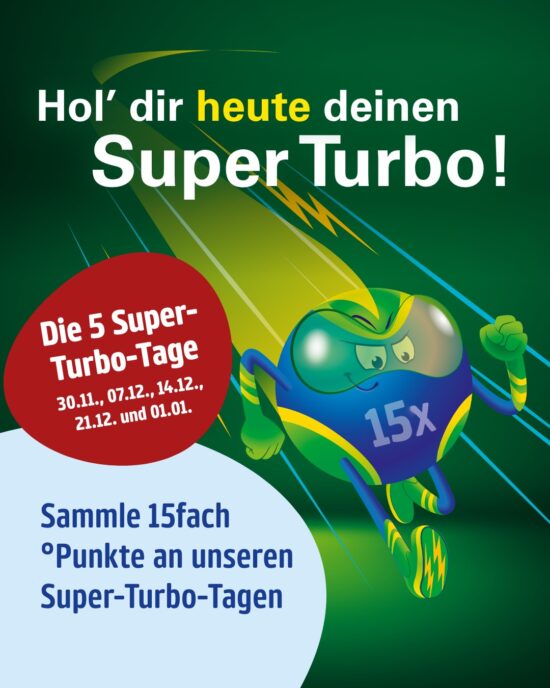 * Aktion gültig vom 13.10.2025 bis 04.01.2026. Jede 100. Transaktion, bei der PAYBACK °Punkte gesammelt werden, hat die Gewinn-Chance auf die 10fache °Punkteanzahl der Transaktion. Die Ermittlung der Gewinner erfolgt automatisiert und zufallsbasiert über das Kassensystem. Die Gewinnbenachrichtigung erfolgt direkt auf dem Kassabon – Irrtum vorbehalten. Mehrfachgewinne sind möglich. Gilt nicht auf von der Bepunktung ausgenommene Ware.